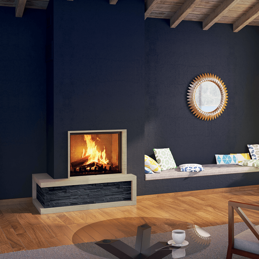 Esta chimenea de leña tiene un cristal de mayor altura para hacerle disfrutar plenamente de la espectacularidad de las llamas. Su cristal serigrafiado negro resalta con elegancia la sencillez de sus líneas. Dispone de un sistema de combustión limpia y combustión estanca para las viviendas mejor aisladas.
